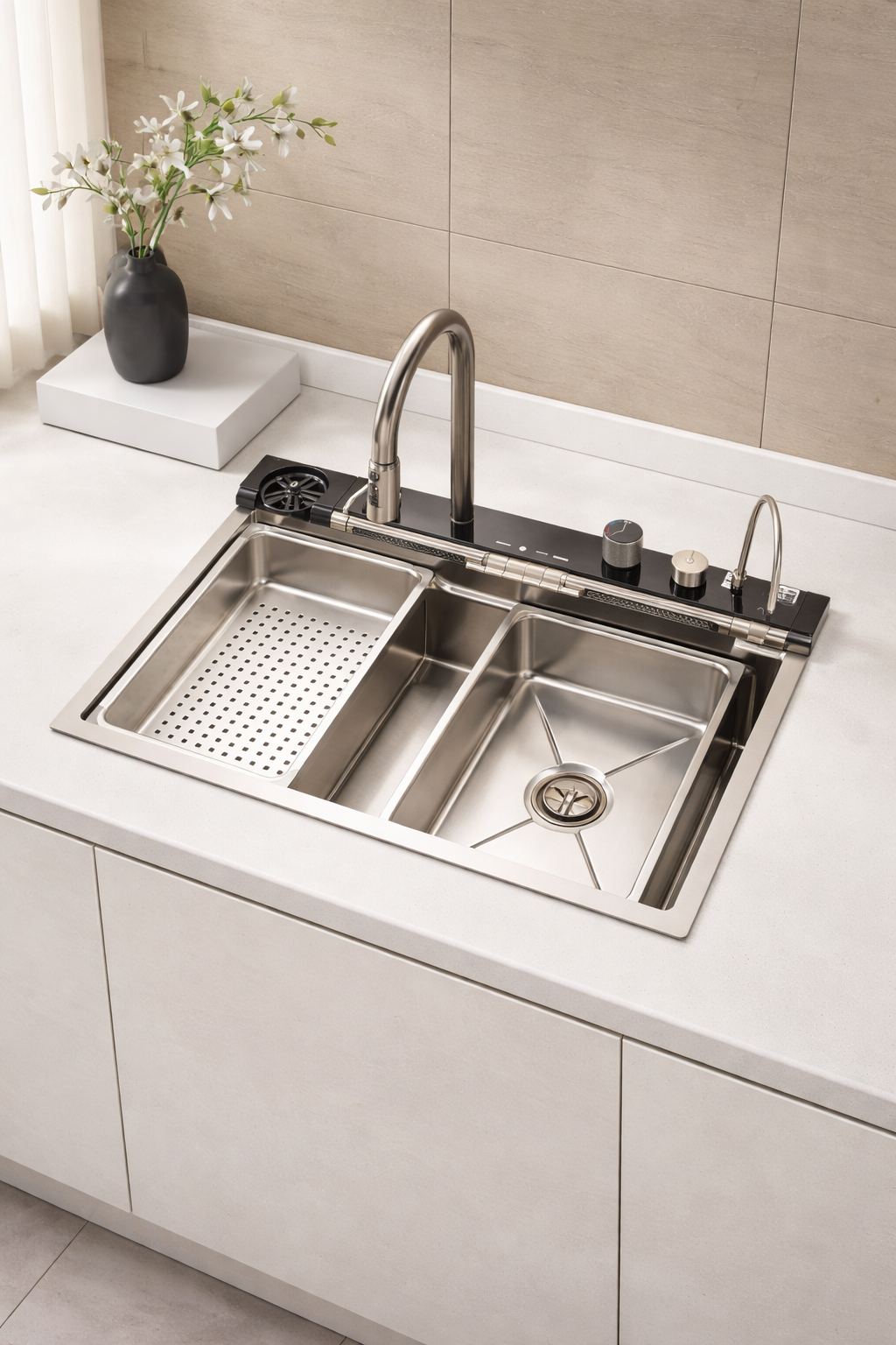 Cet évier peut être encastré ou affleurant, selon le style souhaité. Il s’adapte à la plupart des plans de travail (quartz, stratifié, granit, céramique).