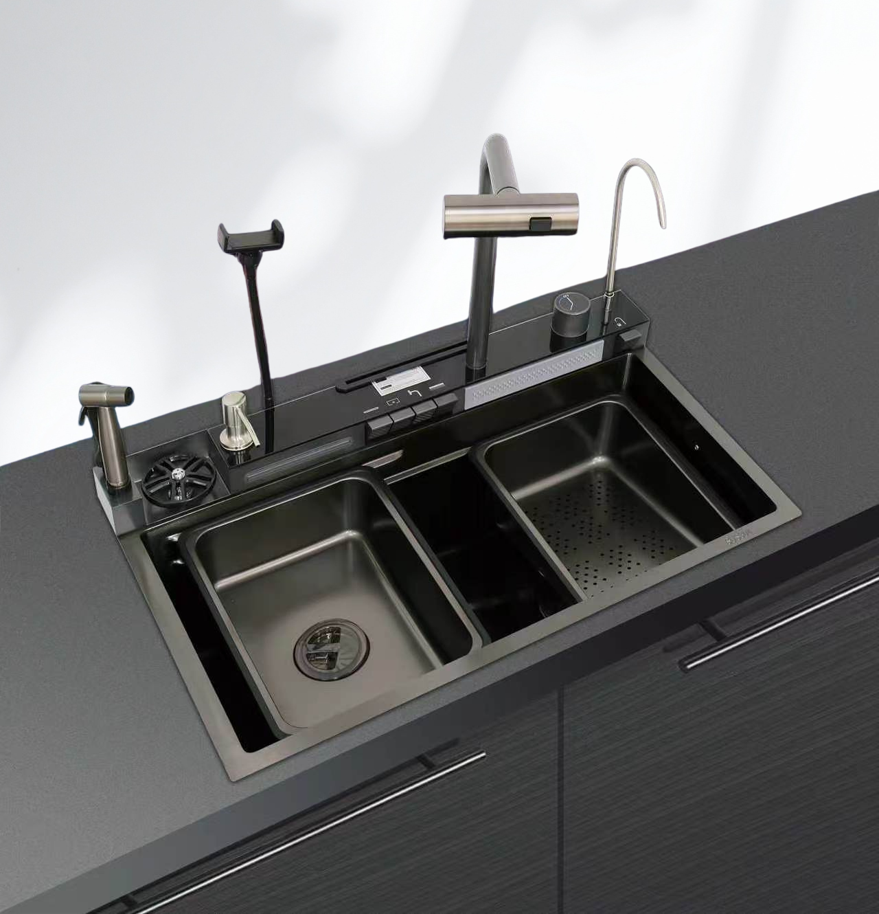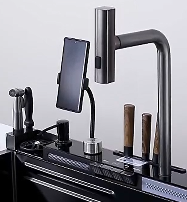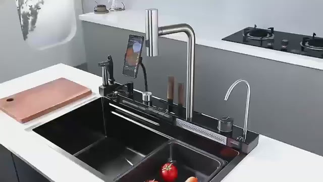 • Double cascade avec douchette 3 fonctions